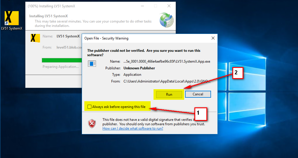 จากนั้นกดปุ่ม Install ในหน้าจอที่แสดงขึ้นมา สังเกตว่า จะมีคำเตือนเรื่องที่เป็น "Unknown Publisher" เนื่องจากเรายังไม่มี (ไม่ได้ซื้อ) Code-Signing Certificate ครับ มันก็จะขึ้นเตือนว่า ระวังนี้ ไอ้นี่มันใครก็ไม่รู้