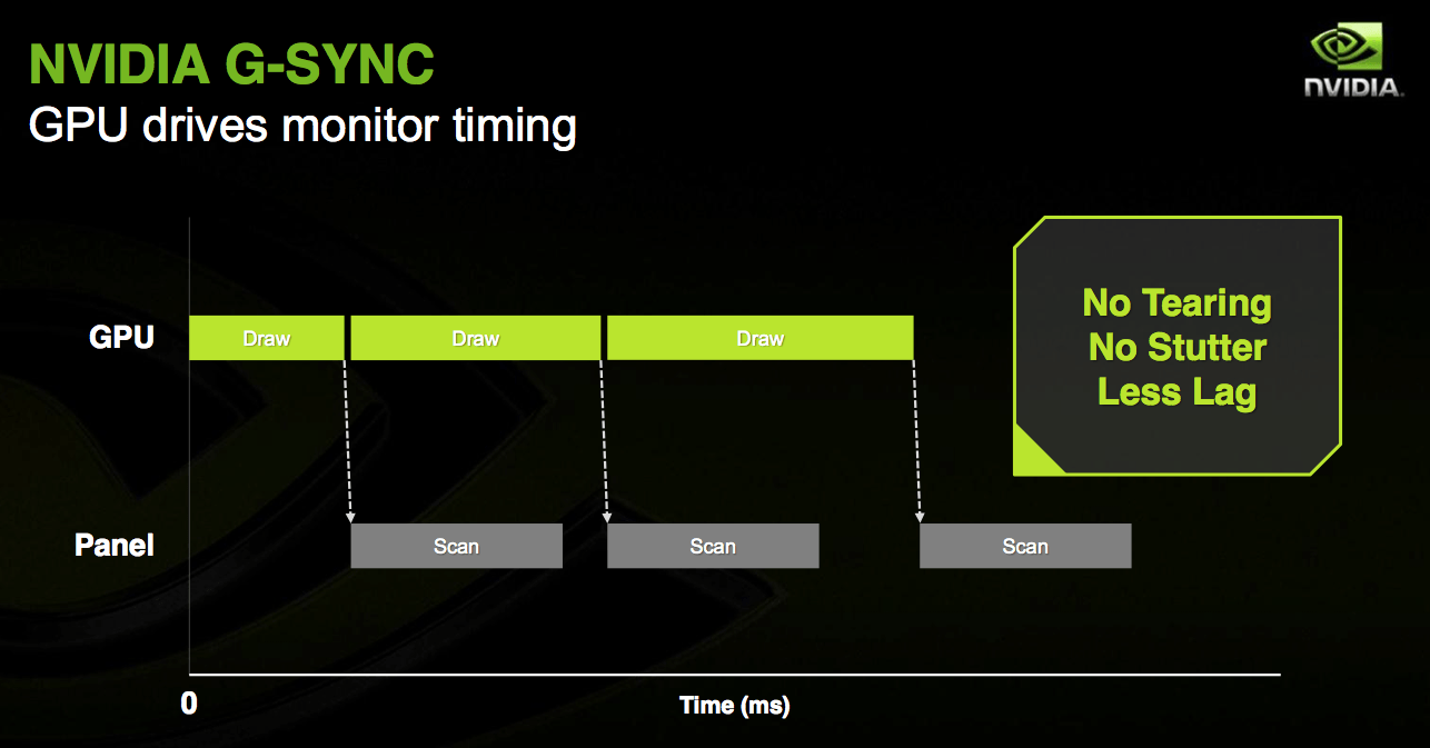 สรุปสั้นๆ ก็คือ ต่อไปนี้ หน้าจอไม่จำเป็นต้อง Refresh ด้วยอัตราคงที่อีกแล้ว ก็ถ้าเมื่อไหร่ GPU วาดภาพเสร็จ ก็แค่ส่งภาพไปที่หน้าจอ หน้าจอก็วาดจนจบ แล้วก็ค้างภาพรอไว้จนกว่าจะมีภาพใหม่ แค่นั้นแหละ!!!