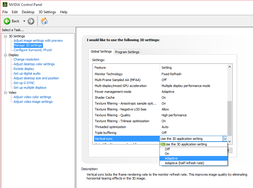เพื่อป้องกันปัญหานี้ ก่อนหน้านี้ NVidia จะมีตัวเลือกที่เรียกว่า Adaptive V-Sync คือ เอาข้อดีของการปิด V-Sync กับเปิด V-Sync มาอยู่ด้วยกัน โดย Driver จะปิด V-Sync ถ้าพบว่า fps ต่ำกว่า Hz ของหน้าจอ เพื่อลด Stuttering และ Input Lag และเปิด V-Sync ถ้าพบว่า fps สูงกว่า Hz ของหน้าจอ แต่มันก็ยังไม่ช่วยเท่าไหร่ มันแค่ลดลงเฉยๆ เพราะว่าไม่ได้แก้ไขที่ต้นเหตุคือ จอภาพควรจะแสดงภาพ หลังจากที่ GPU วาดเสร็จทันที จริงไหม!!!